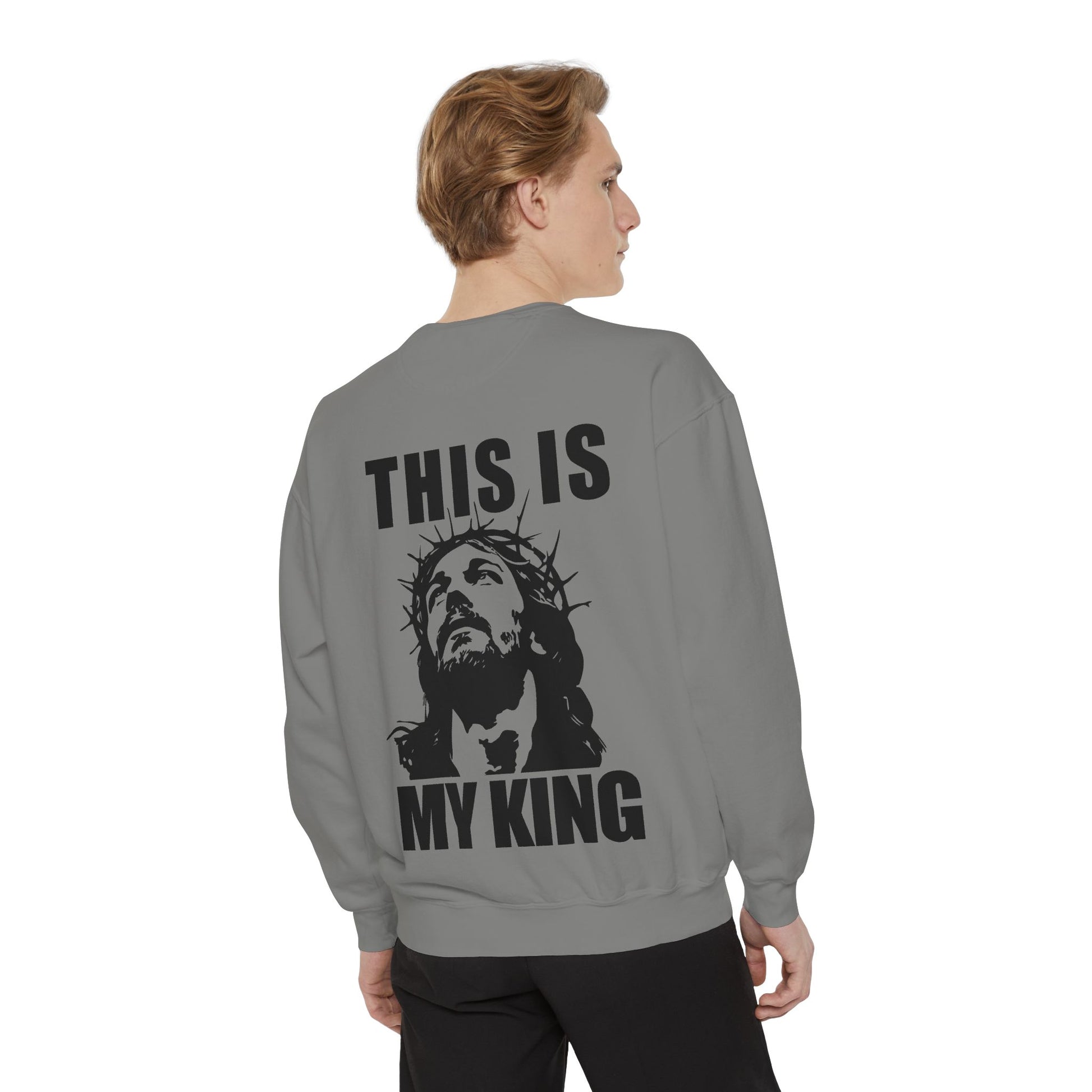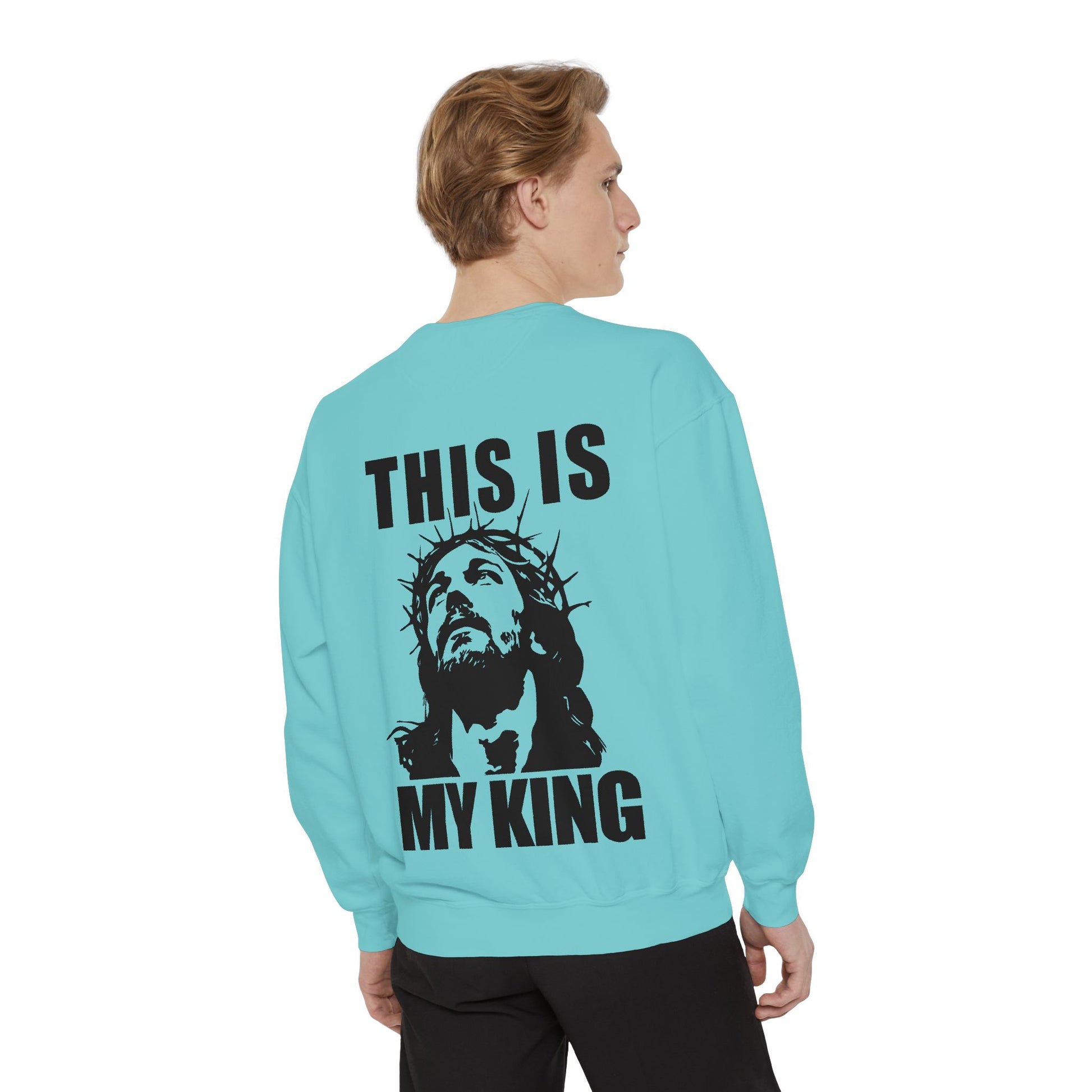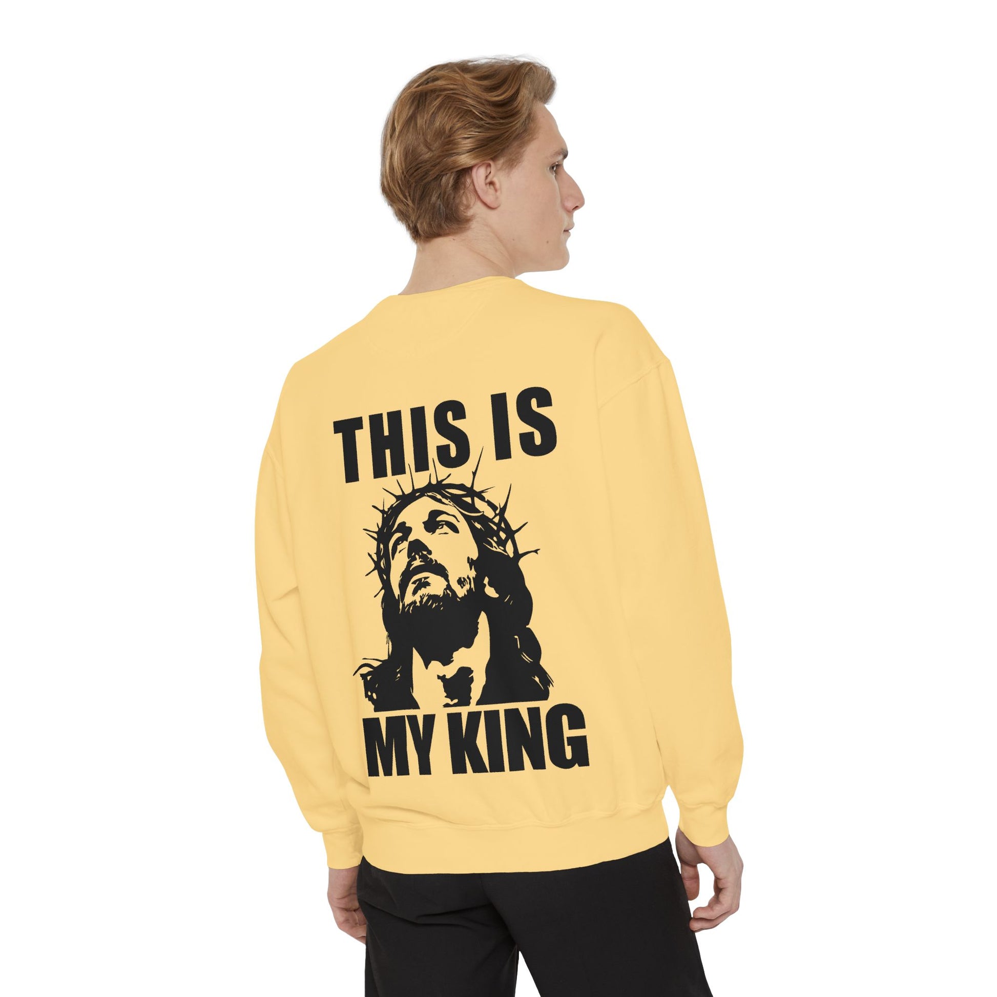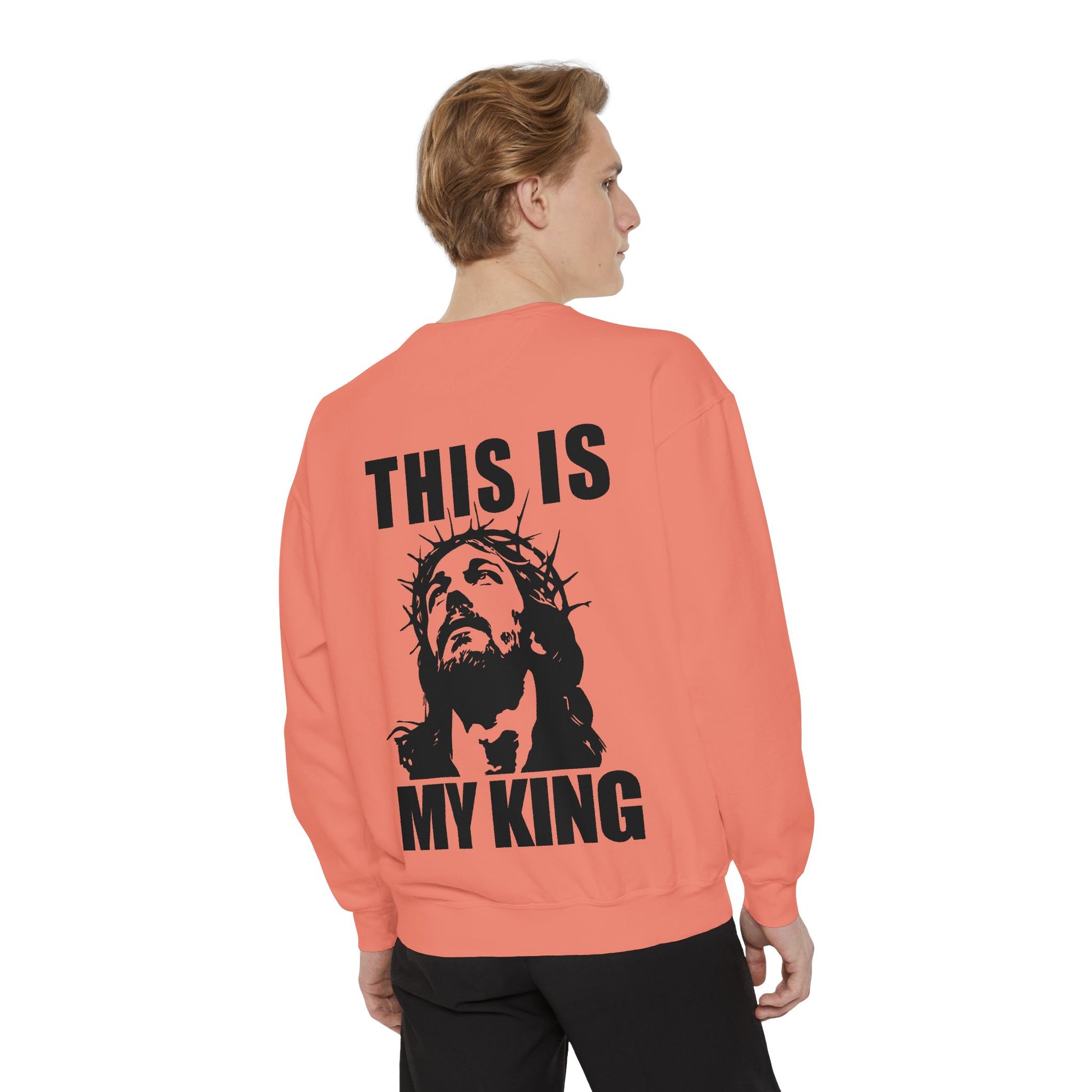 Unisex Garment-Dyed Sweatshirt - 'This Is My King' Inspirational Faith Apparel