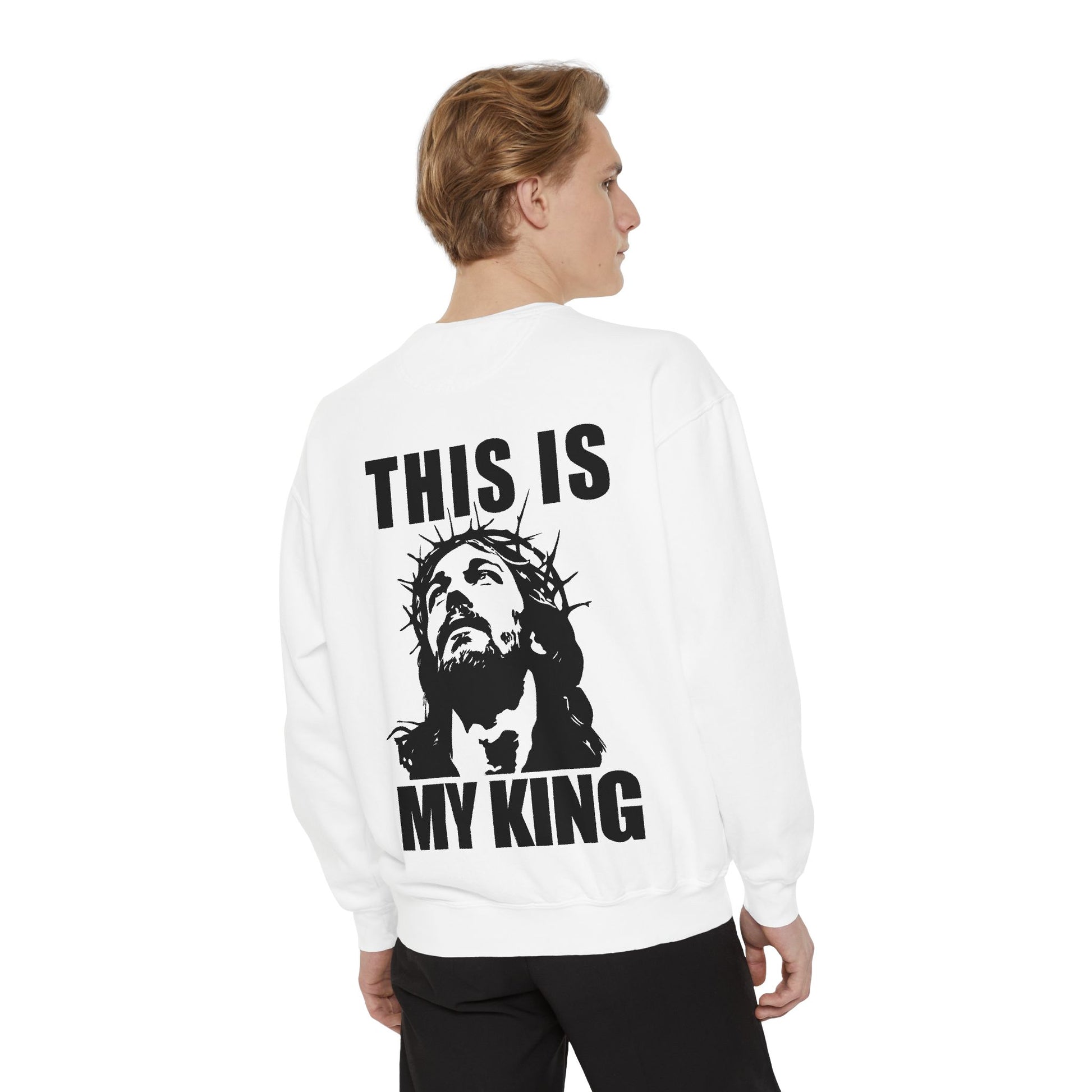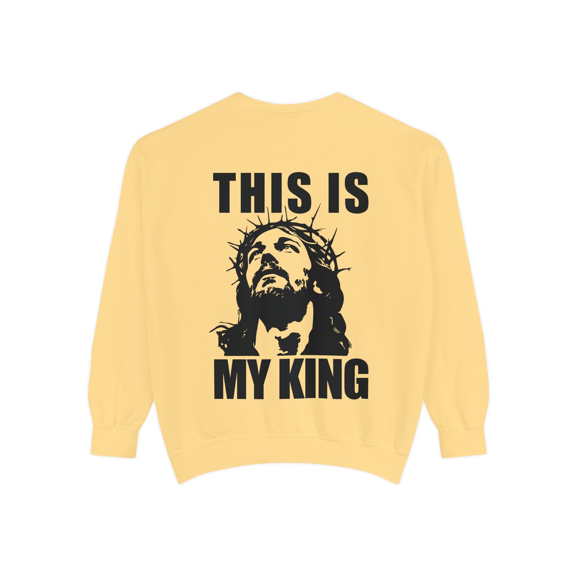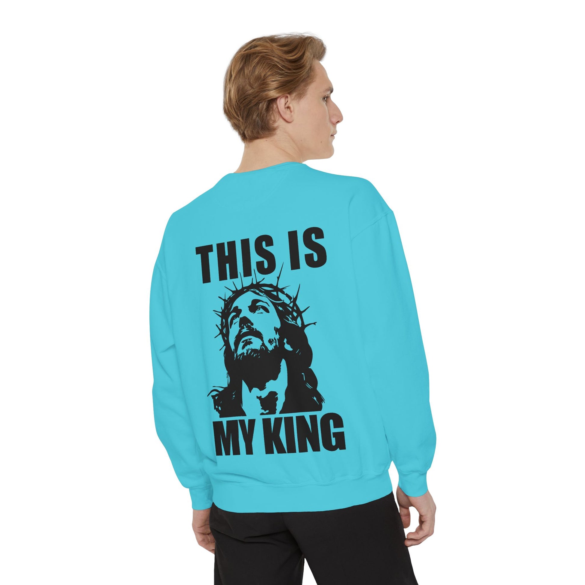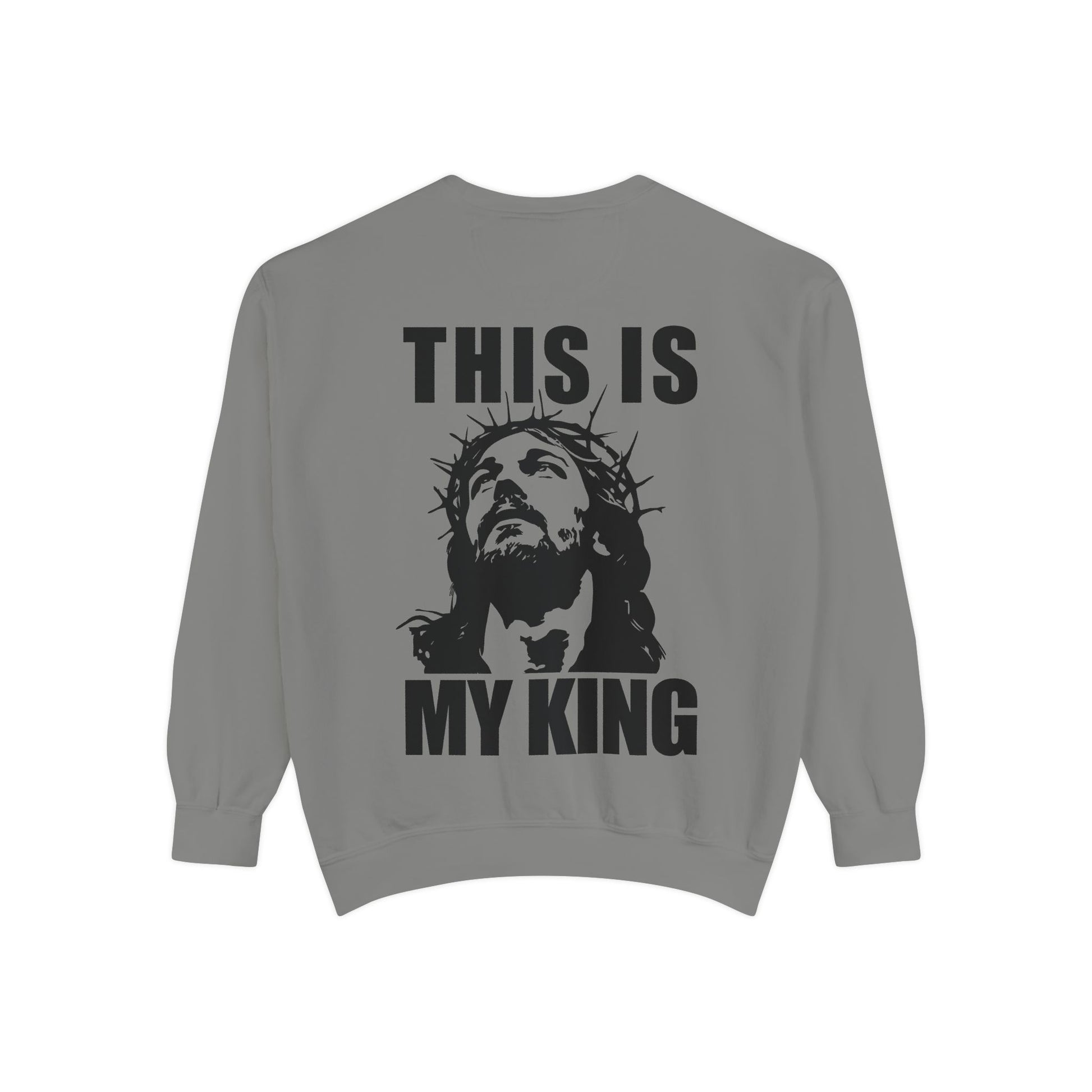 Unisex Garment-Dyed Sweatshirt - 'This Is My King' Inspirational Faith Apparel