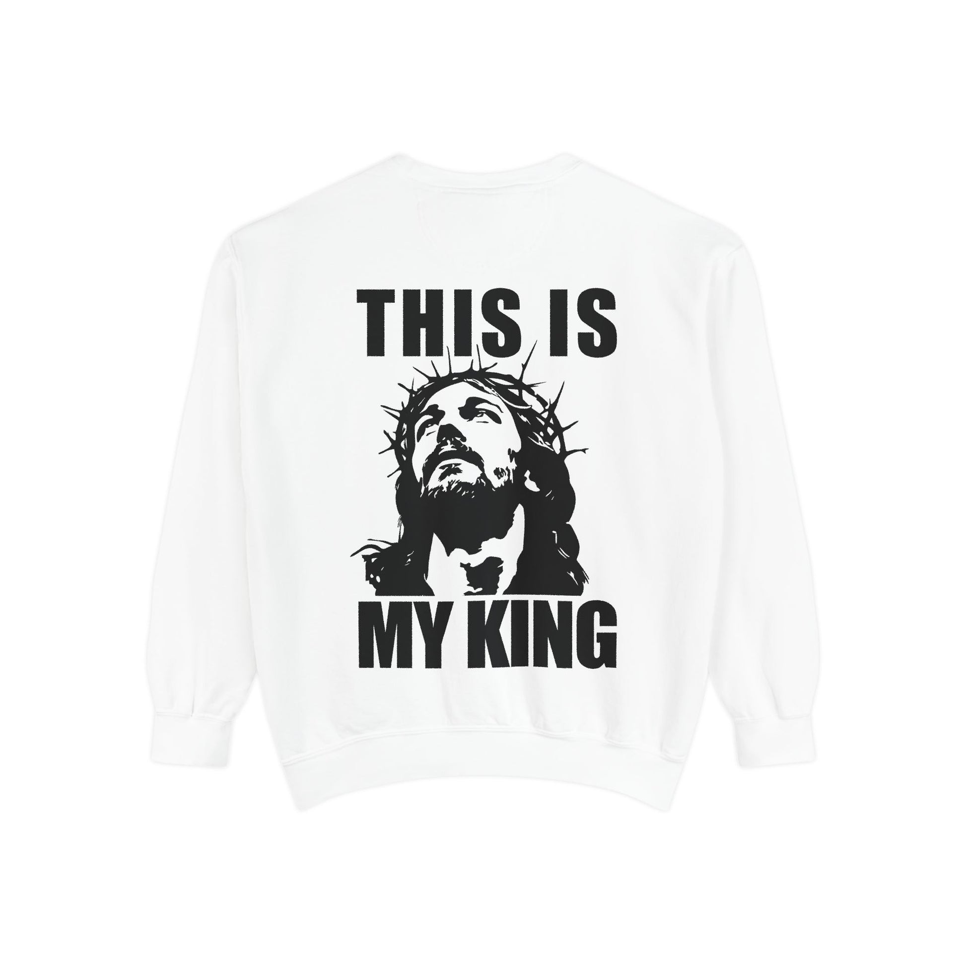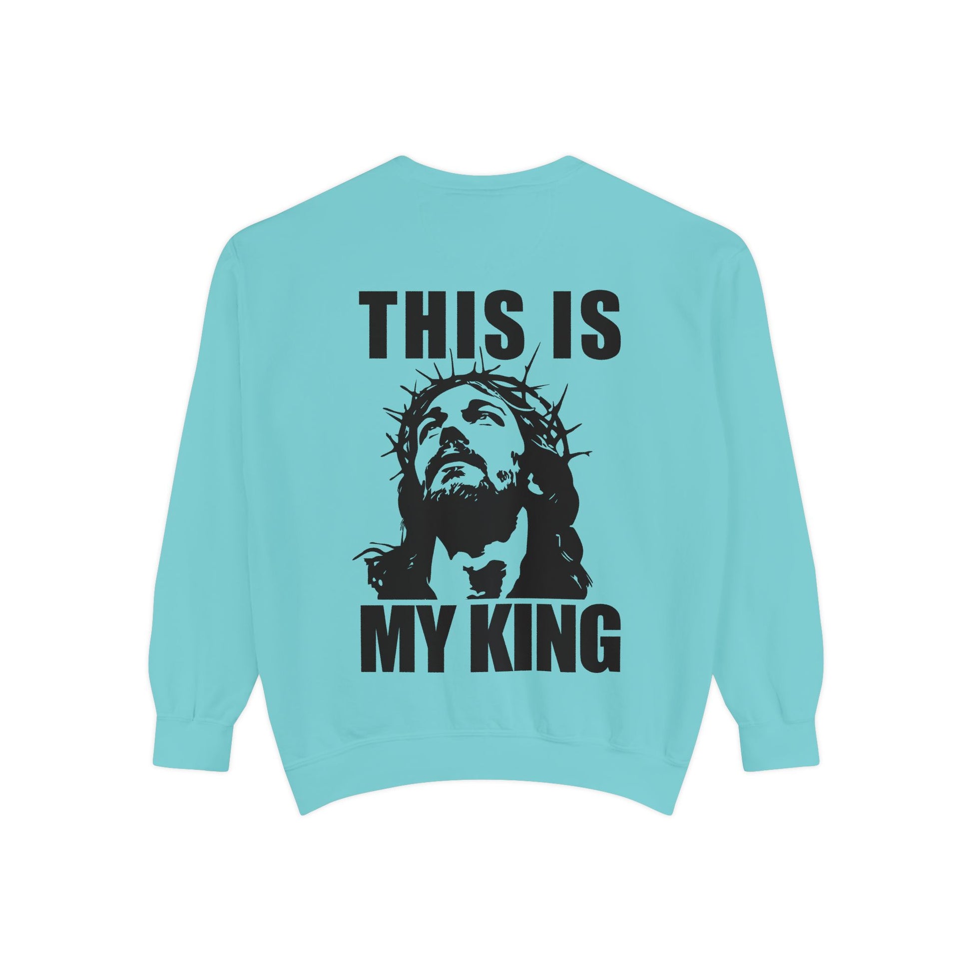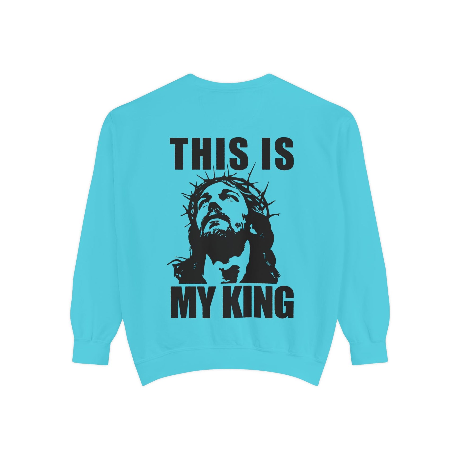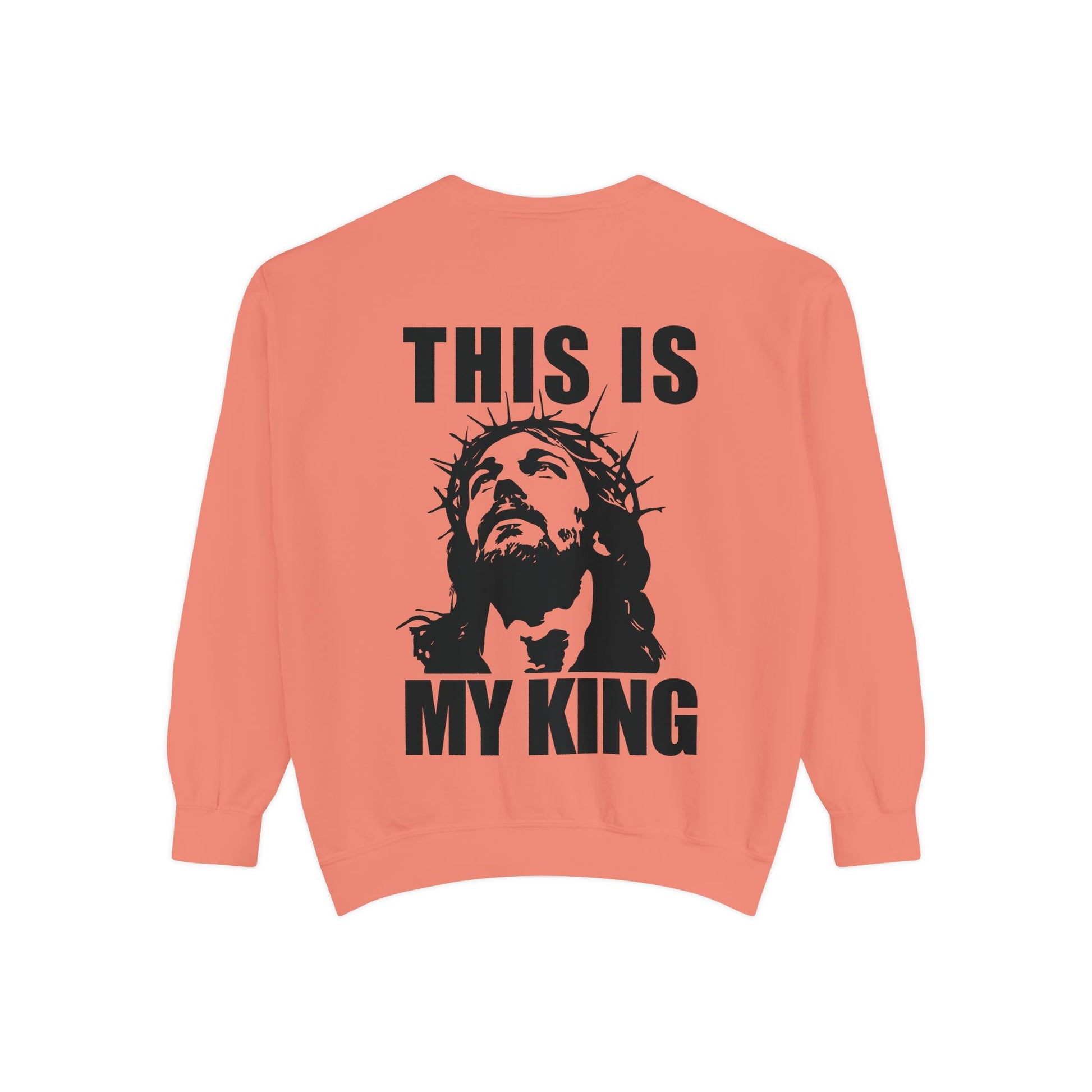 Unisex Garment-Dyed Sweatshirt - 'This Is My King' Inspirational Faith Apparel